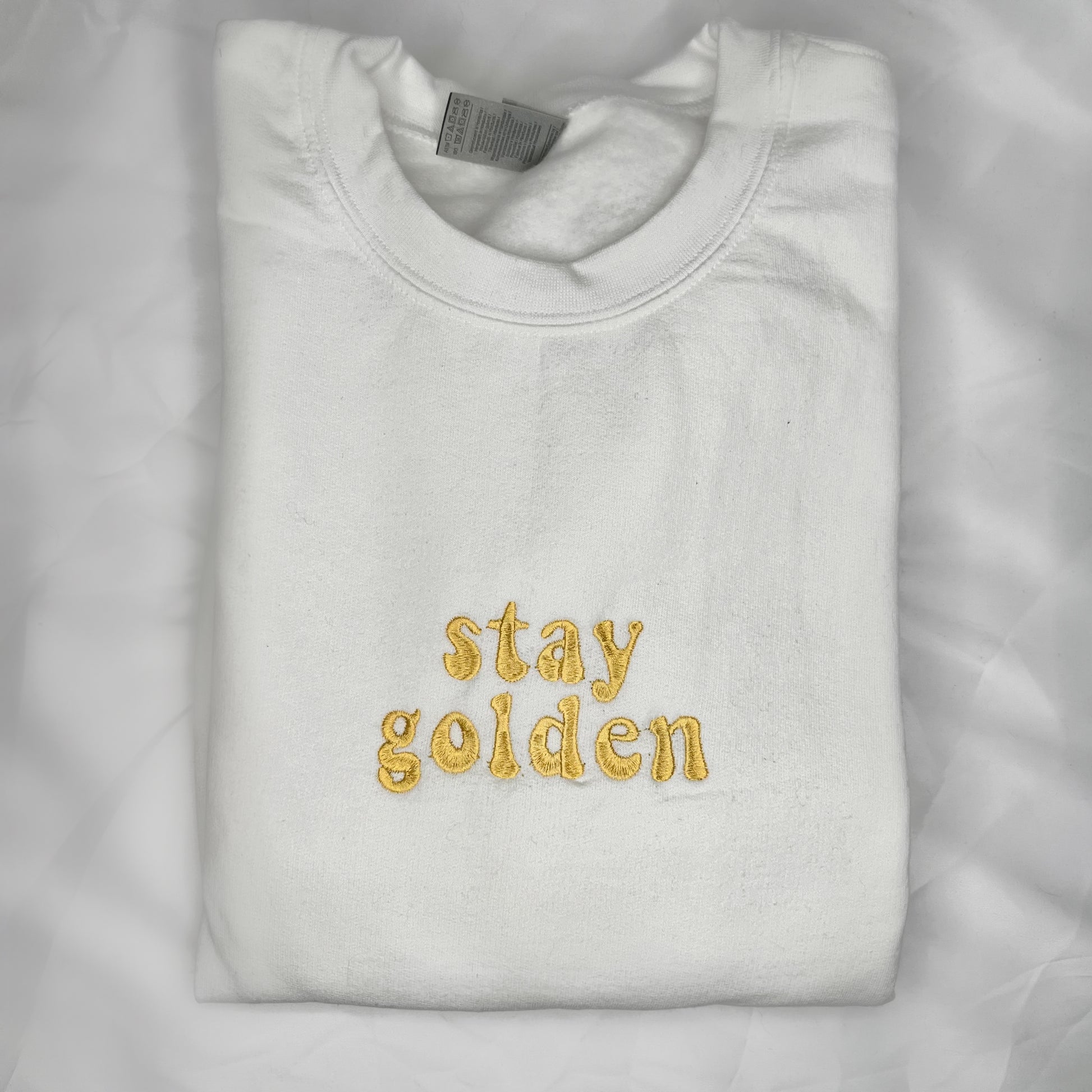 - Cute 'Stay Golden' Golden thread White Crewneck